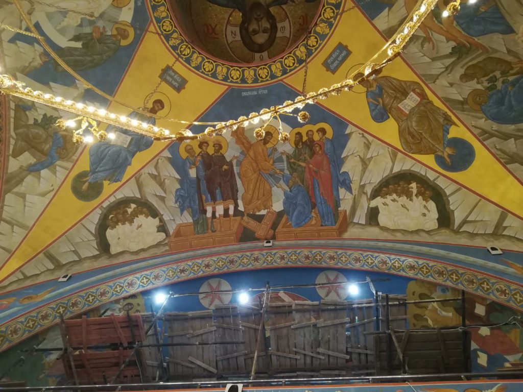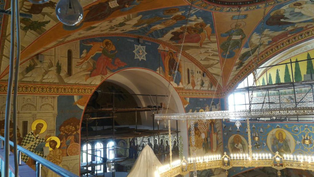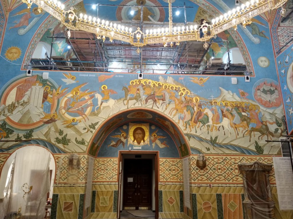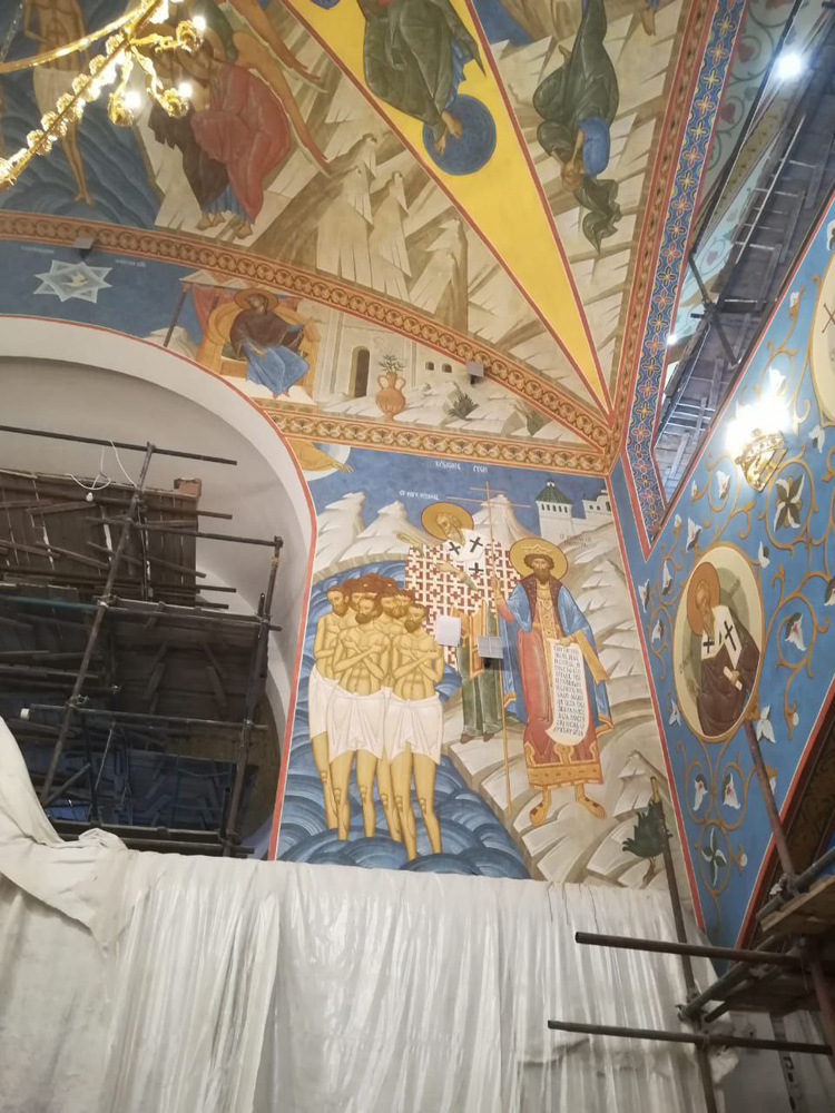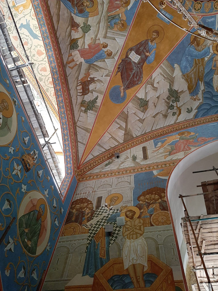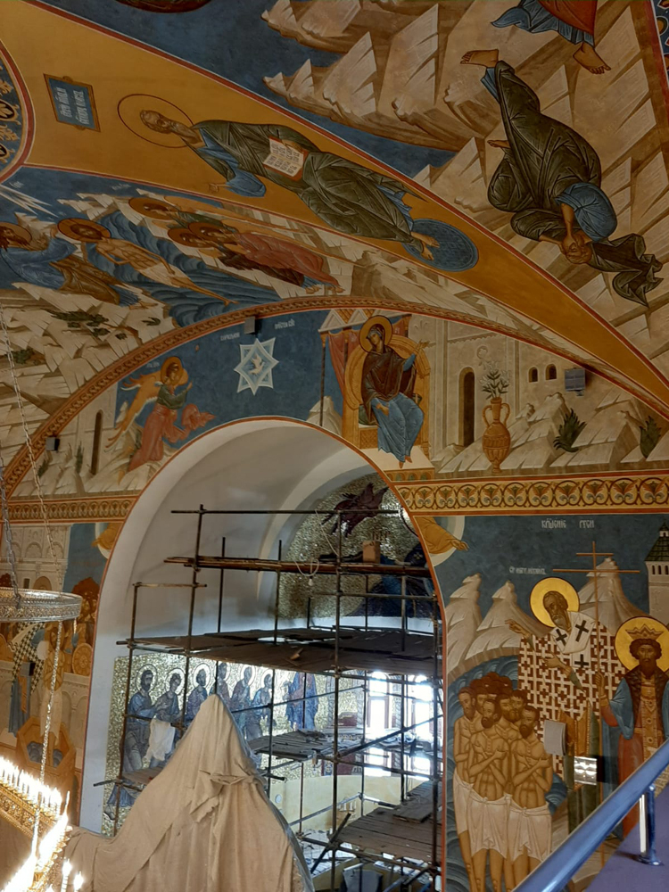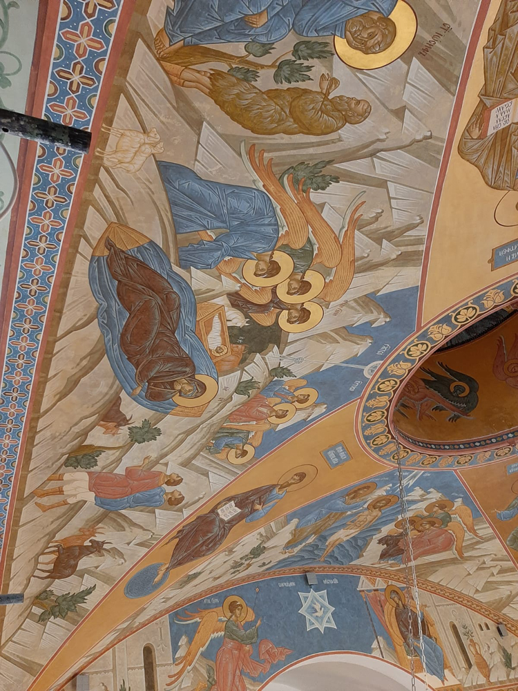 Роспись по сухой штукатурке. Акрил. Общая площадь росписи 950 кв.м.