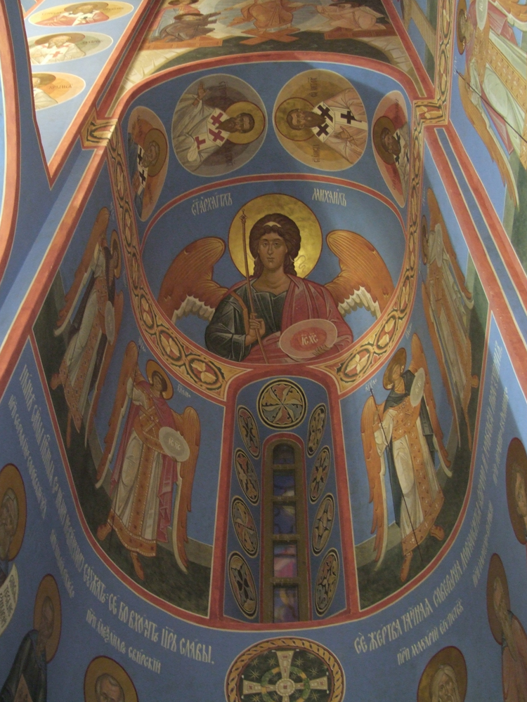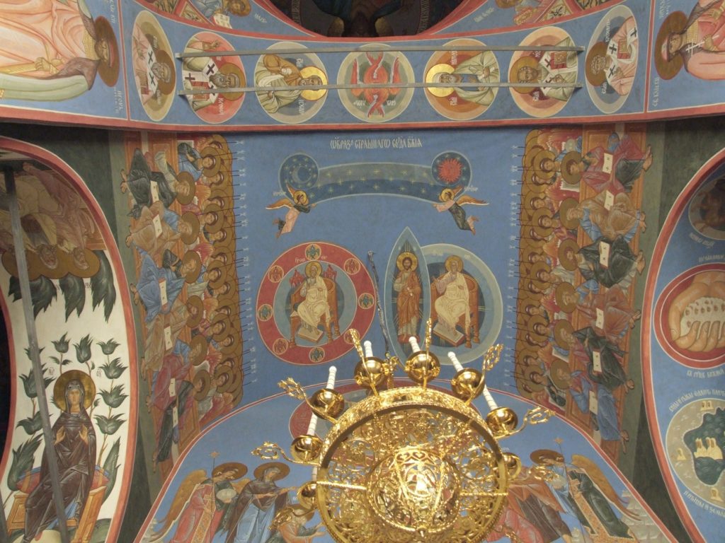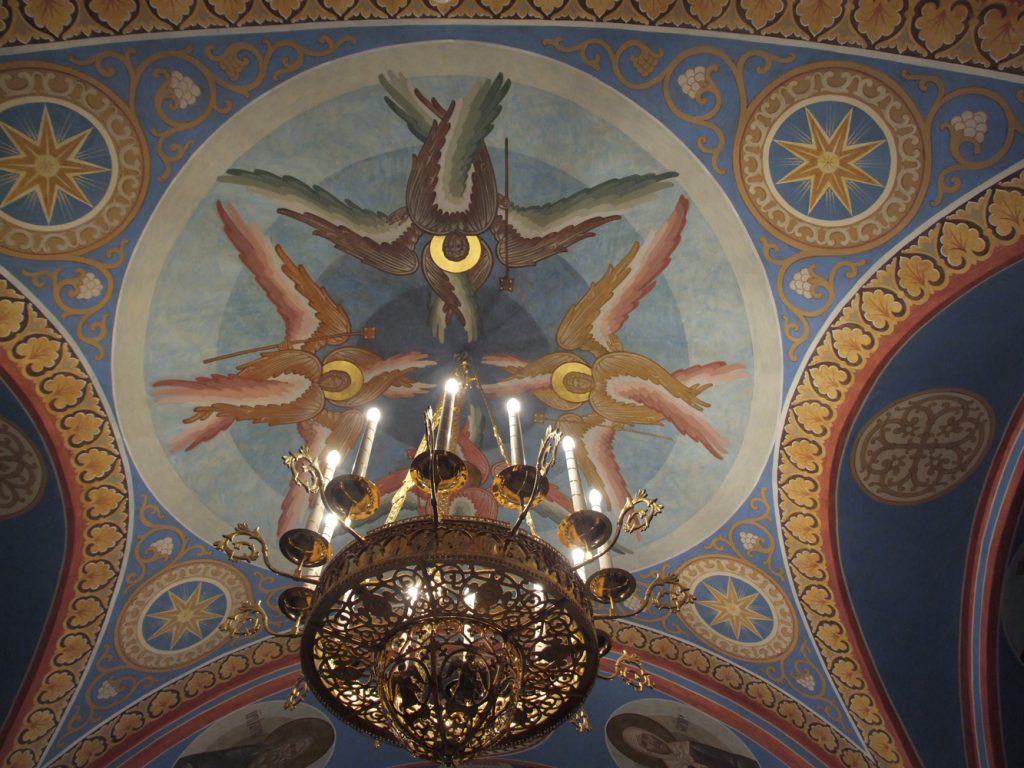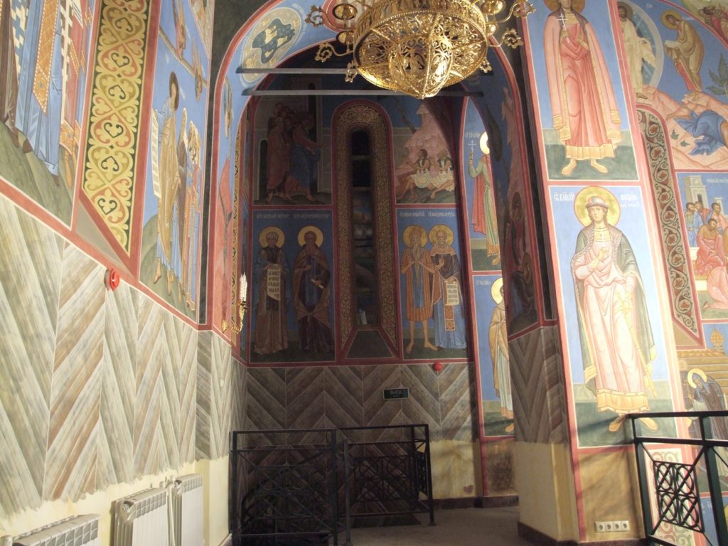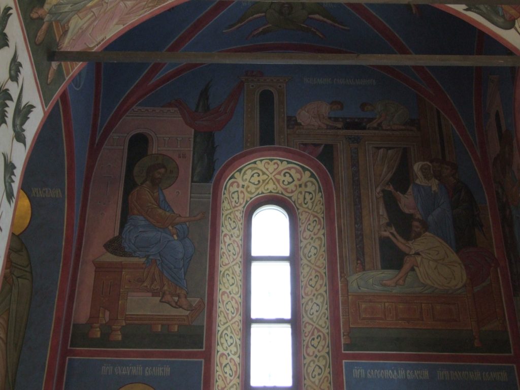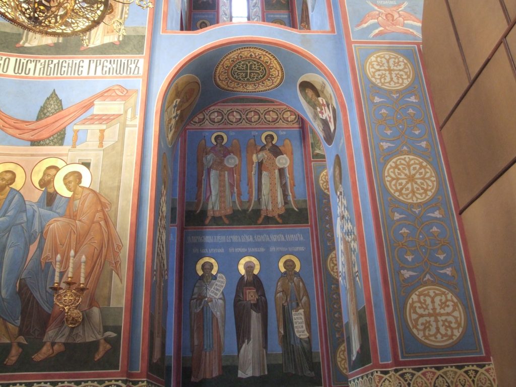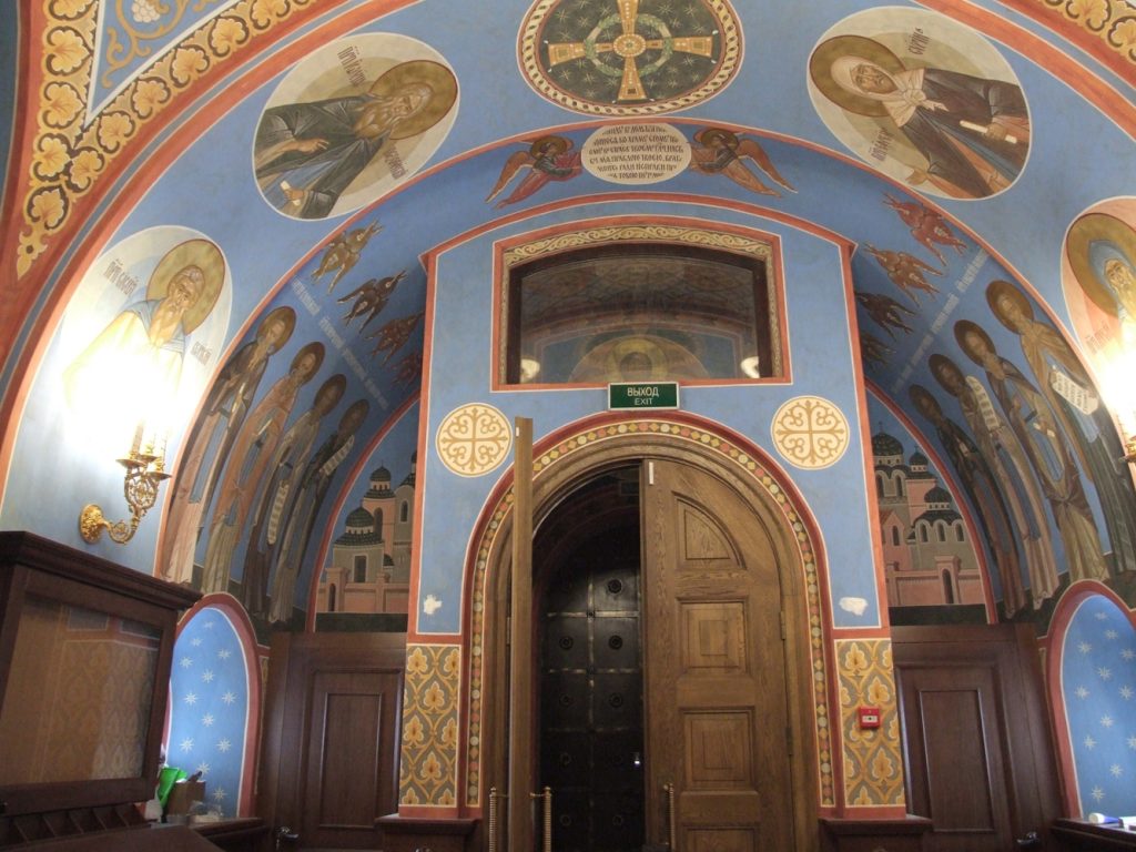 Роспись по сухой штукатурке. Силикат, золочение. Общая площадь росписи 550 кв.м.