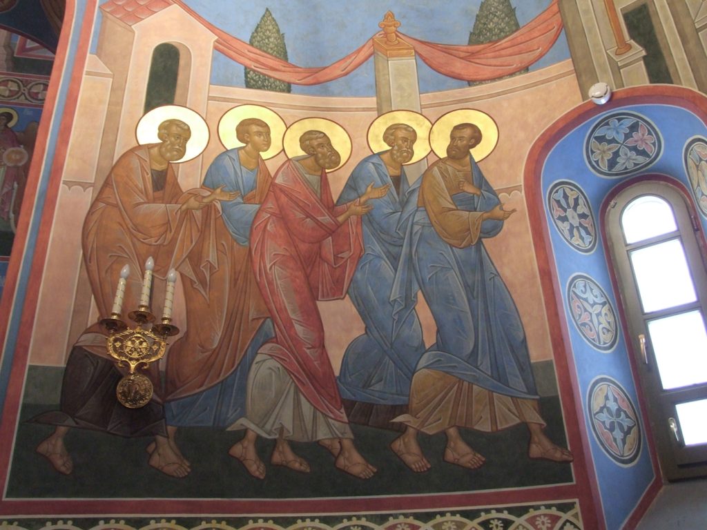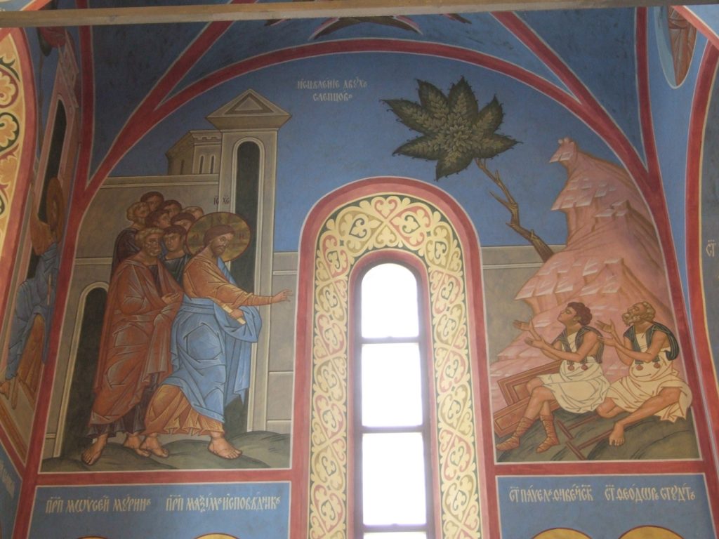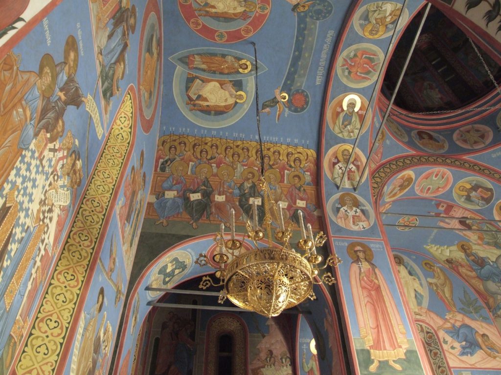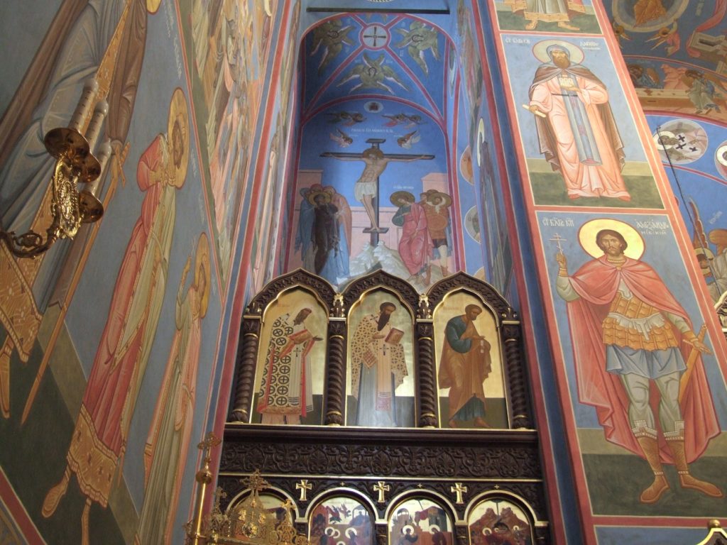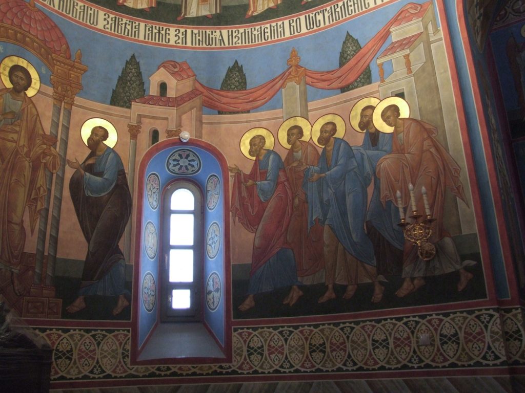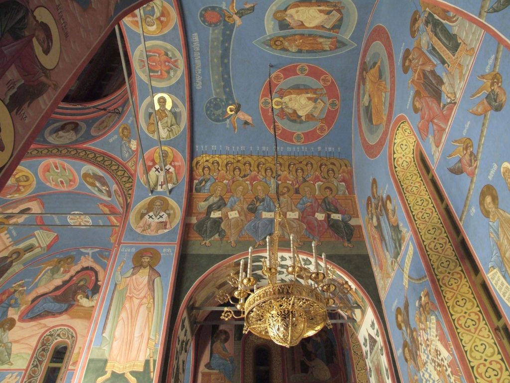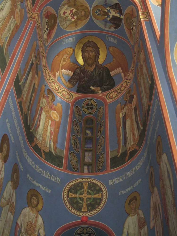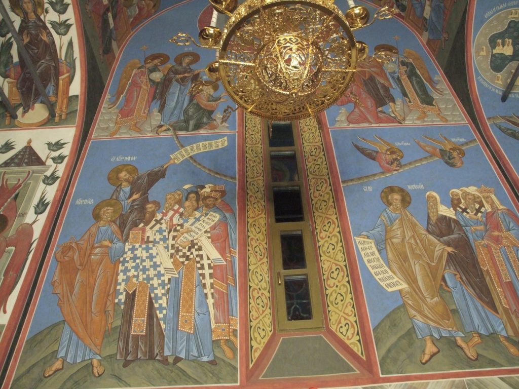 Роспись по сухой штукатурке. Силикат, золочение. Общая площадь росписи 550 кв.м.